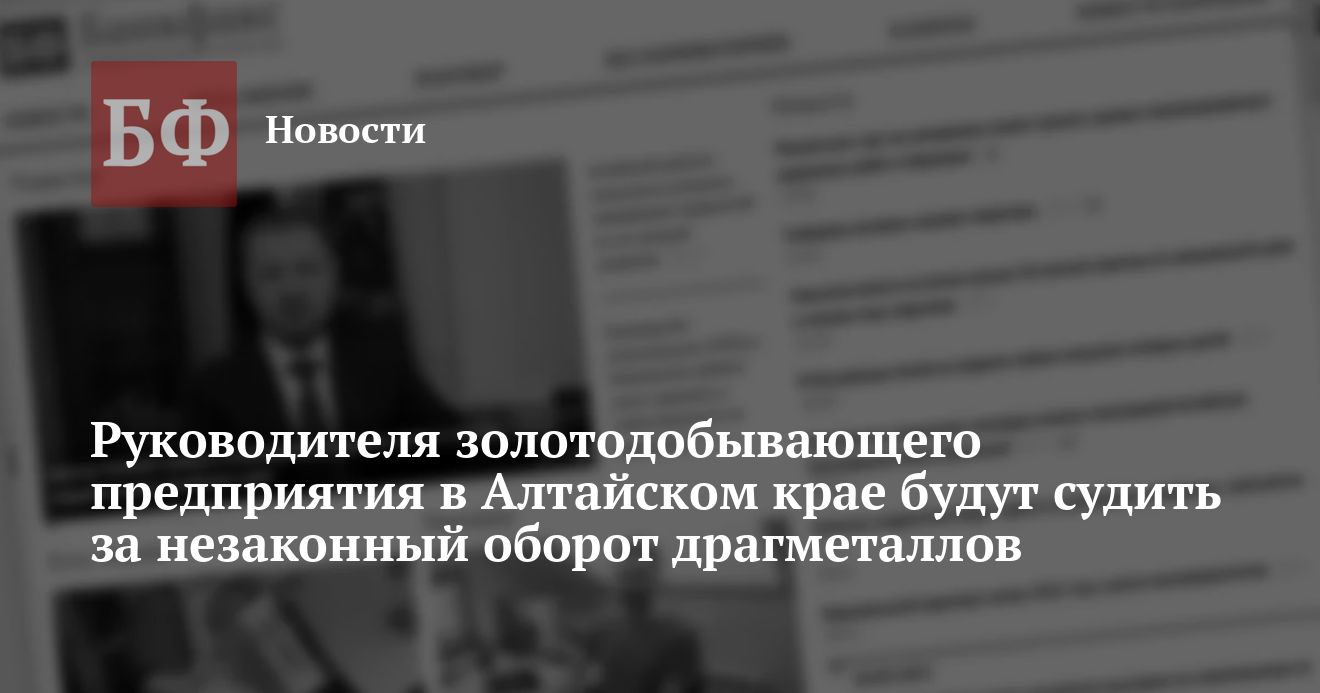 Прокуратура Алтайского края направила в суд уголовное дело, возбужденное в отношении руководителя золотодобывающего предприятия из Заринского района. Как сообщает пресс-служба ведомства, его обвиняют в незаконном обороте драгоценных металлов и покушении на дачу взятки.