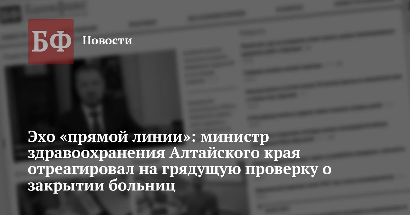 21 декабря председатель федерального правительства Михаил Мишустин поручил профильным ведомствам провести проверку о закрытии районных больниц в Алтайском крае, сообщается на сайте кабмина. Министр здравоохранения региона Дмитрий Попов уже отреагировал на данное событие. В ходе онлайн-трансляции 21 декабря он заявил, что за последние два года в крае не было закрыто ни одной ЦРБ.