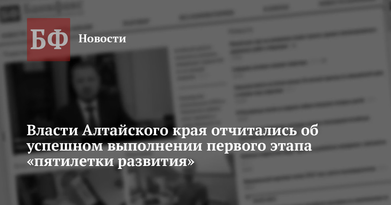 Губернатор Алтайского края Виктор Томенко подвел итоги первого года реализации программы индивидуального развития региона. Как сообщается на сайте краевого правительства, губернатор полагает, что все обязательства по программе были выполнены, а средства из федеральной казны — освоены.