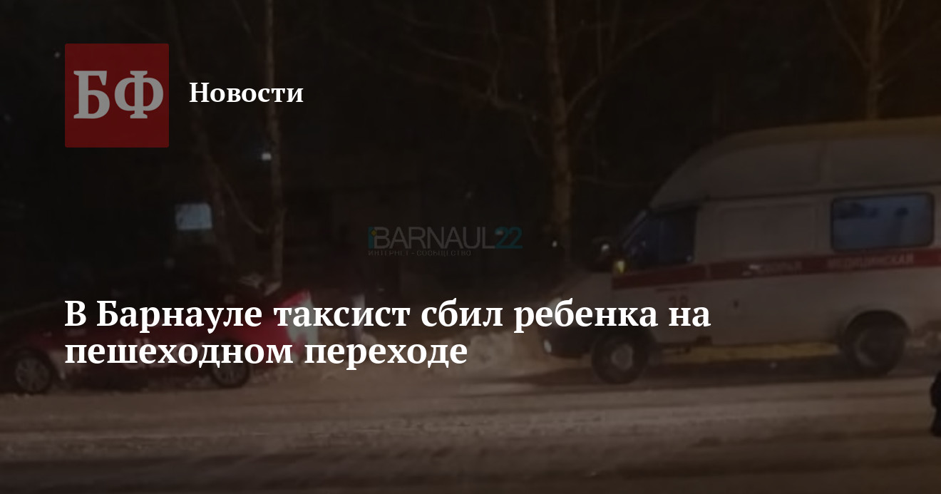 Вечером 23 декабря в Барнауле произошло ДТП, в результате которого пострадала 12-летняя девочка — на пешеходном переходе ее сбил легковой автомобиль, обклеенный логотипами популярной службы заказа такси. Ребенку потребовалась помощь медиков.