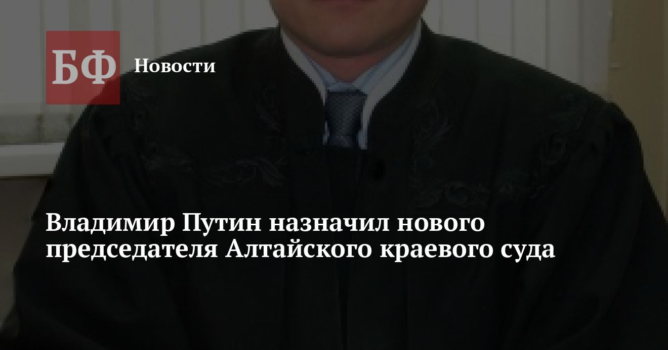 Указом президента РФ Владимира Путина в должности председателя Алтайского краевого суда утвержден Эдуард Ермаков. Соответствующий документ опубликован на официальном портале правовой информации.