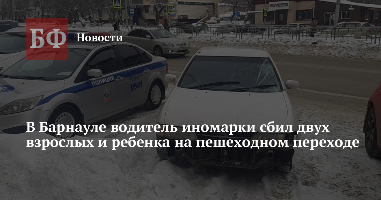 В Барнауле 12 января водитель легкового автомобиля сбил сразу трех пешеходов на нерегулируемом переходе. В результате ДТП пострадали две женщины и ребенок, «скорая» увезла из в больницу, однако госпитализация не потребовалась. Об этом «Банкфаксу» рассказали в отделении ОГИБДД УМВД России по Барнаулу.