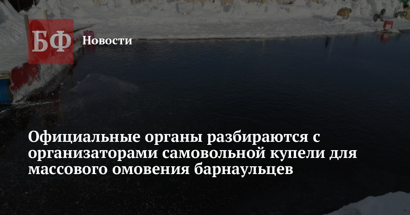 Между тем в региональном Роспотребнадзоре оказались не в курсе предстоящего мероприятия и порекомендовали обратиться за комментарием в мэрию, которая должна собирать информацию о купаниях в проруби. В пресс-центре города ИА «Банкфакс» сообщили, что к ним заявка о проведении крещенского обряда в частном порядке не поступала. Впрочем, представители власти подчеркнули, что оповещать городскую администрацию об этом не обязательно — достаточно проинформировать об этом напрямую Роспотребнадзор, сотрудники которого должны снять пробы воды и выдать соответствующее разрешение. В мэрии также добавили, что единственная официальная в городе прорубь — в Борзовой Заимке — также организуется в частном порядке, но там уже получены все необходимые документы. Проводить крещенский обряд частным организациям администрация Барнаула запретить не может.