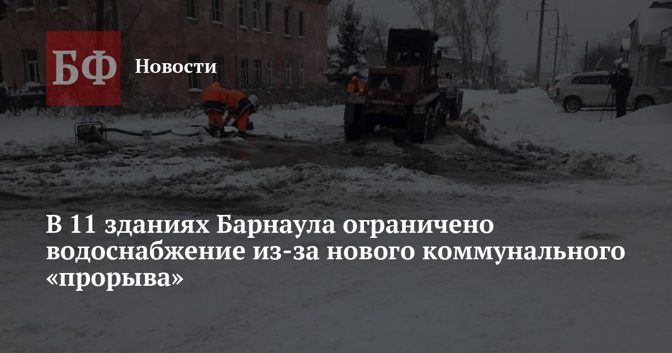22 января в Барнауле произошло повреждение водопроводной сети на улице Шевченко. Сотрудники «Росводоканала Барнаул» уже приступили к устранению аварии. Выход воды на улицу был прекращен. Пока водоснабжение ограничено в 11 зданиях.