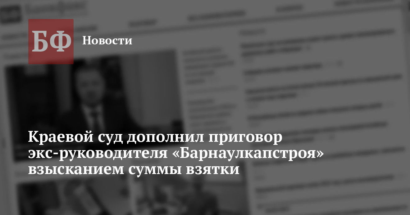 Напомним, что бывший директор «Барнаулкапстроя» Александр Канаков также должен выплатить 15 млн штрафа, будучи признанным виновным в преступлении по ч. 6 ст. 290 УК РФ (получение должностным лицом лично взятки в виде денег в особо крупном размере, совершенное группой лиц по предварительному сговору). В ходе разбирательства выяснилось, что в период с июля по сентябрь 2019 года Канаков, действуя совместно с замглавы барнаульской администрации Сергеем Деминым, получил от директора одной из строительных компаний 3,6 млн рублей в качестве части ранее оговоренной взятки, общий размер которой должен был составить 15 млн рублей. Деньги полагались за покровительство некой фирме в приемке строительства многоквартирного дома и обеспечении выгодного предпринимательства. Преступление выявили сотрудники УФСБ России по Алтайскому краю. В конце февраля 2020 года Канаков был арестован.