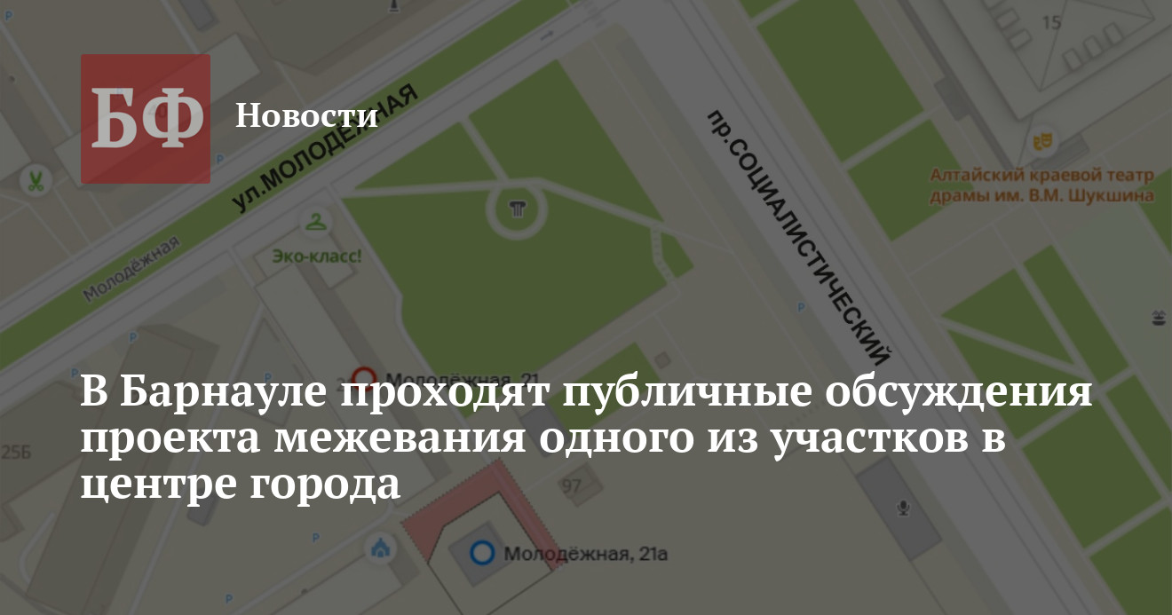 В мэрию обратилась жительница Барнаула Нина Куратова, которой и принадлежит указанный участок на улице Молодежной. Его площадь составляет 998 кв. м. Собственница этой территории попросила чиновников продать путем прирезки к нему неразграниченные соседние 889 кв. м земли, находящейся в собственности Алтайского края. По данным комитета по строительству, архитектуре и развитию Барнаула, официально документ значится как «Проект межевания застроенной территории в границах кадастрового квартала 22:63:040428, ограниченного улицей Молодежной, проспектом Красноармейским, улицей Папанинцев и проспектом Социалистическим в Барнауле (квартал 288) (внесение изменений)».