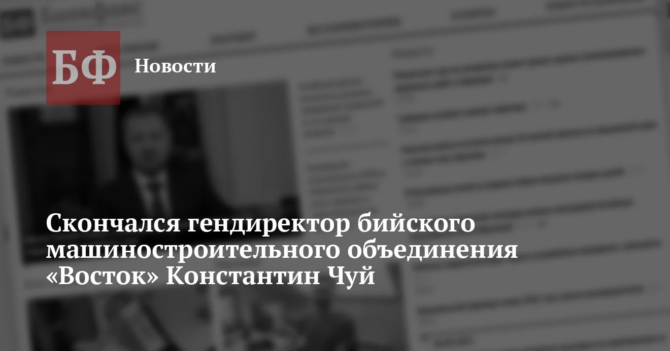 Известный бийский предприниматель, гендиректор машиностроительного объединения «Восток» Константин Чуй ушел из жизни 26 января. Об этом сообщает пресс-служба городской администрации на сайте муниципалитета. Причины смерти не уточняются.