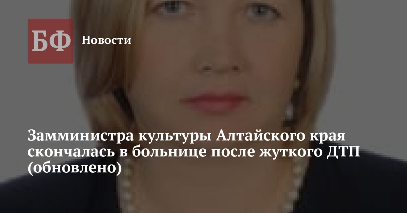 Напомним, по предварительной информации правительства края, на трассе Барнаул — Бийск водитель грузового автомобиля при выезде со второстепенной дороги столкнулся с автомобилем, в котором находились водитель, министр культуры Алтайского края Елена Безрукова, ее заместитель Галина Кубрина и начальник отдела капитального строительства и ресурсного обеспечения Минкульта Федор Зыков. Они направлялись в служебную командировку в Бийск для осмотра земельного участка для возможного строительства Центра культурного развития и технического состояния здания Бийского государственного музыкального колледжа.