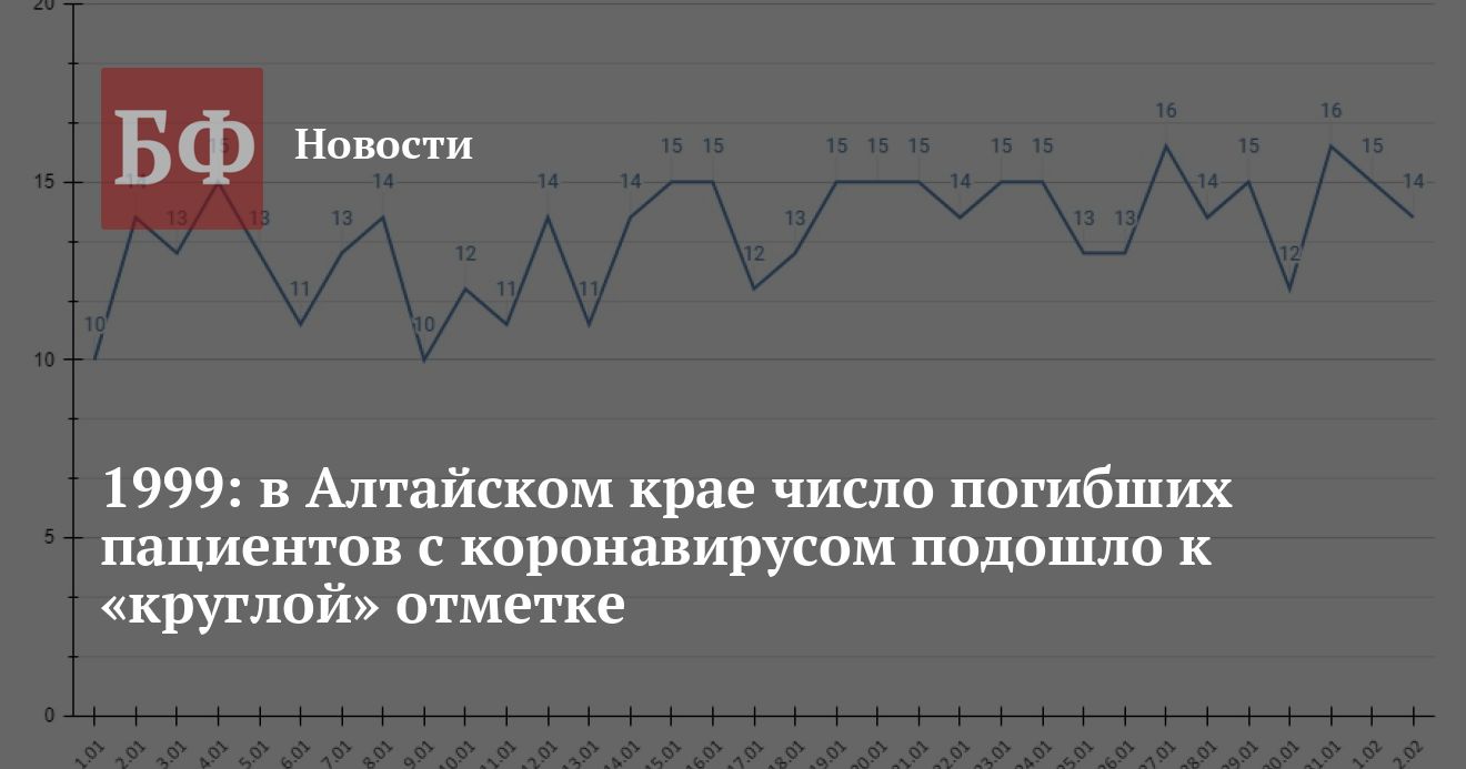 В Алтайском крае за все время пандемии скончалось 1999 пациентов среди заразившихся коронавирусом. Об этом сообщает оперативный штаб региона в своем официальном Telegram-канале по итогам 2 февраля. Суточный прирост унифицированных составил 182 человека.