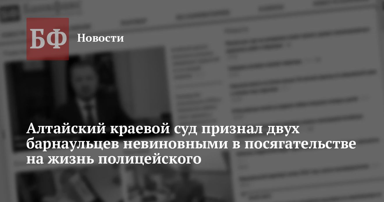 В Алтайском краевом суде произошел довольно редкий пример оправдательного приговора: 18 января на основании оправдательного вердикта присяжных были оправданы два жителя Барнаула, которых обвиняли в посягательстве на жизнь сотрудника полиции и применение насилия в отношении его напарника.