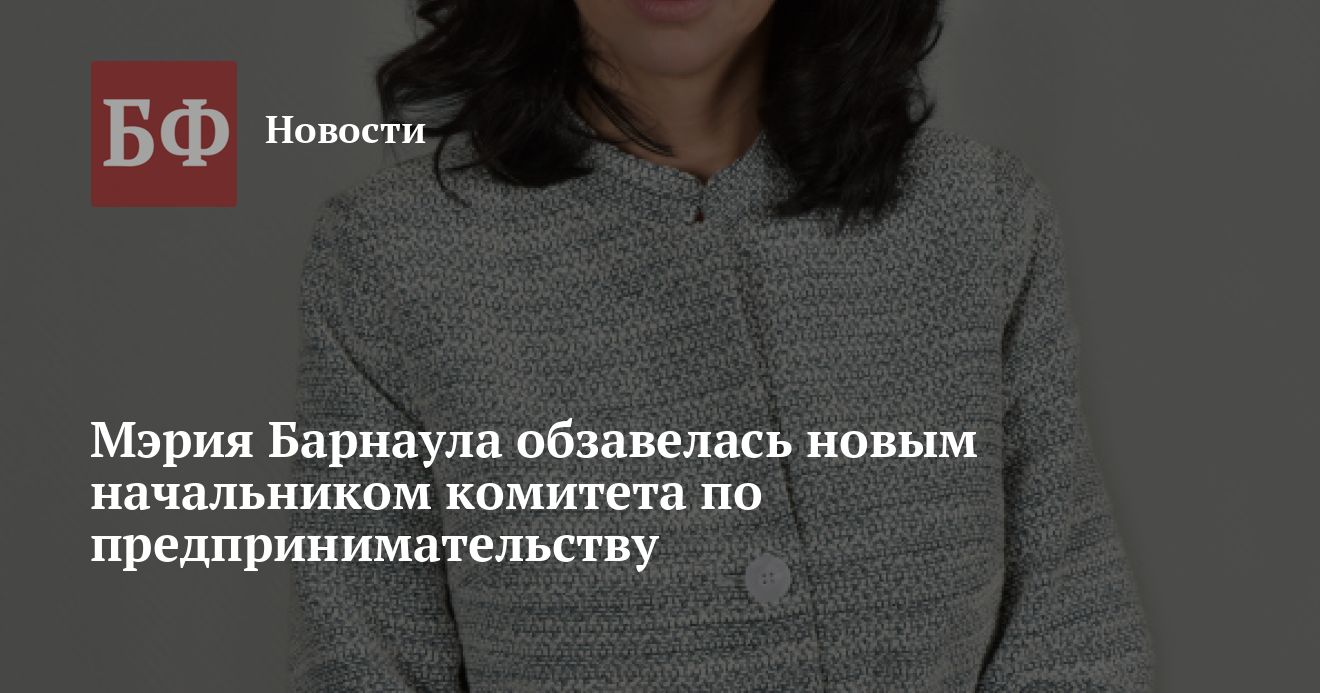 Вакантную до недавнего времени должность председателя комитета по развитию предпринимательства мэрии Барнаула заняла Наталья Кротова. Как сообщается на сайте администрации, соответствующее распоряжение уже подписал глава города Вячеслав Франк.