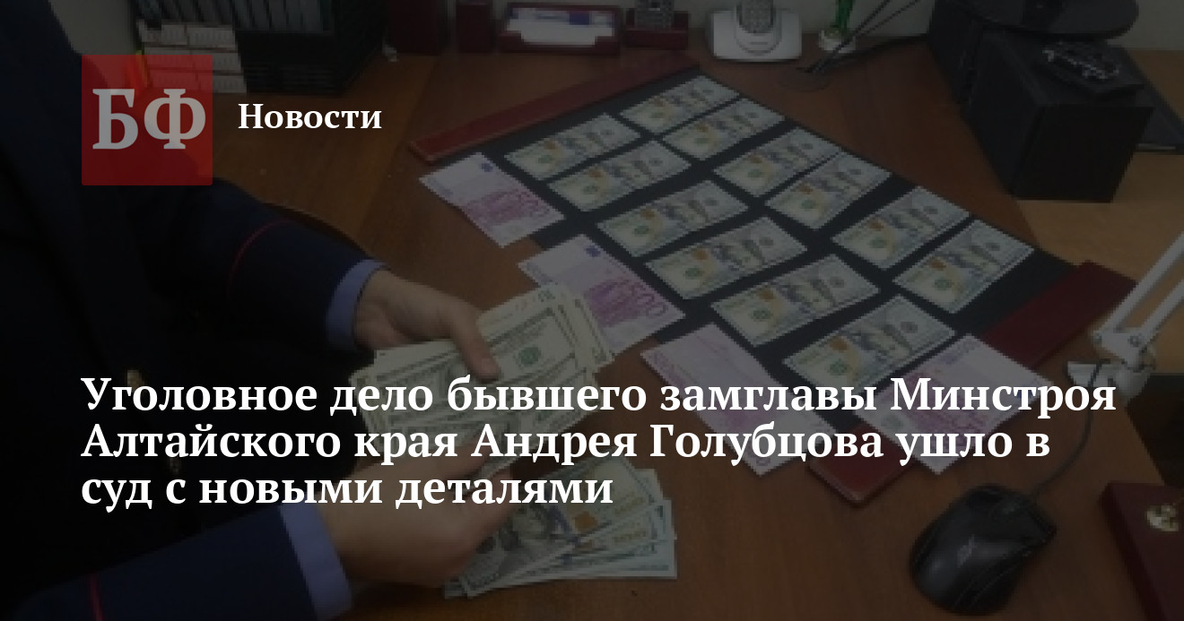 …Завершено расследование уголовного дела в отношении экс-заместителя министерства строительства и ЖКХ Алтайского края Андрея Голубцова. Как сообщает СУ СКР по региону, он мог получать взятки не только на коммунальных контрактах, но и в ходе покупки квартир для сирот, в связи с чем в ходе будущего судебного разбирательства будет рассматриваться еще один пункт обвинения…