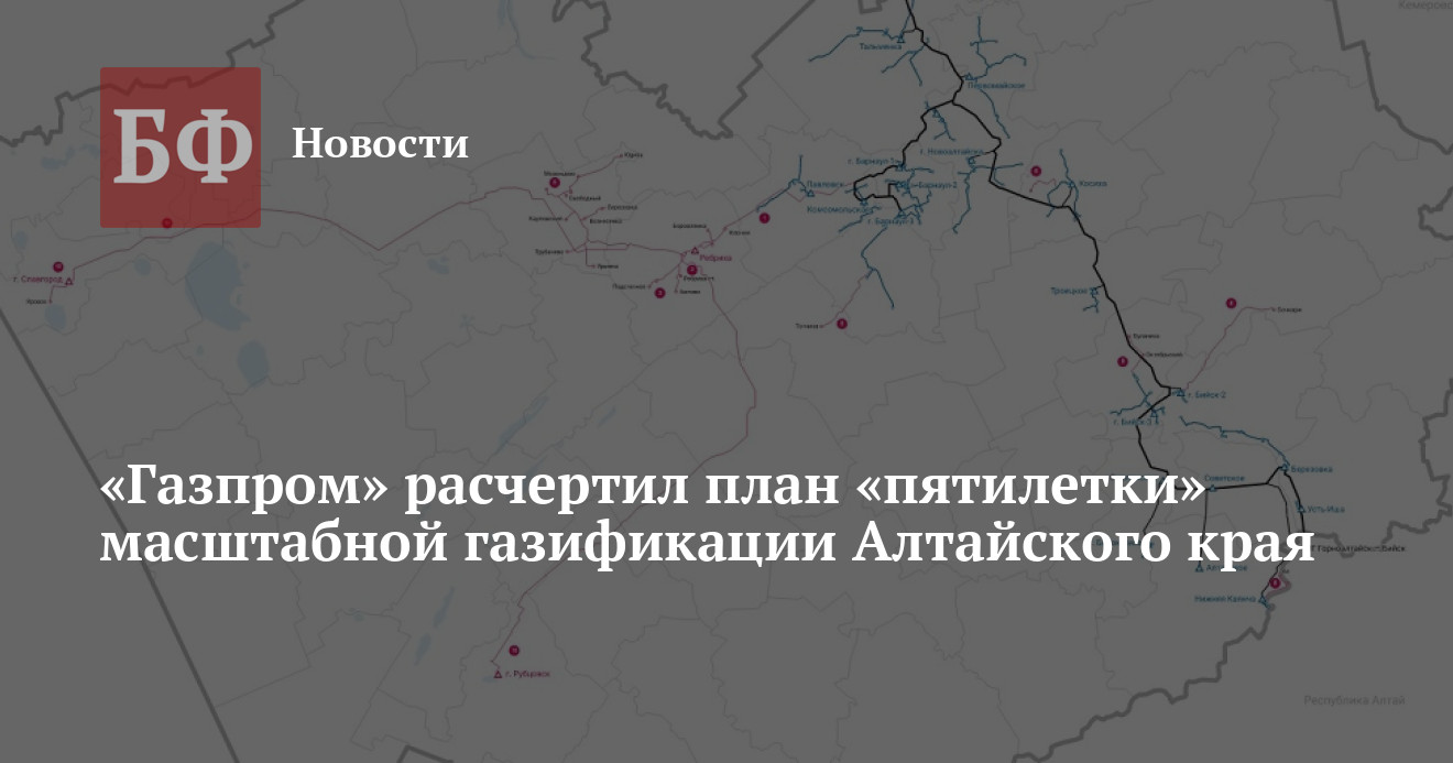 Отметим, что по данным «Газпрома», в 2020 году средний уровень газификации Алтайского края достиг 13,3%. При этом на карте указано, что из всех проложенных газопроводов 338 км будут новыми, тогда как по программе газификации за период 2005—2020 было построено 495 км сетей. Кроме того, в 2005—2019 годах удалось газифицировать 14 671 домовладений и квартир, а за ближайшие пять лет «Газпром» обещает добавить к ним еще 22 223.