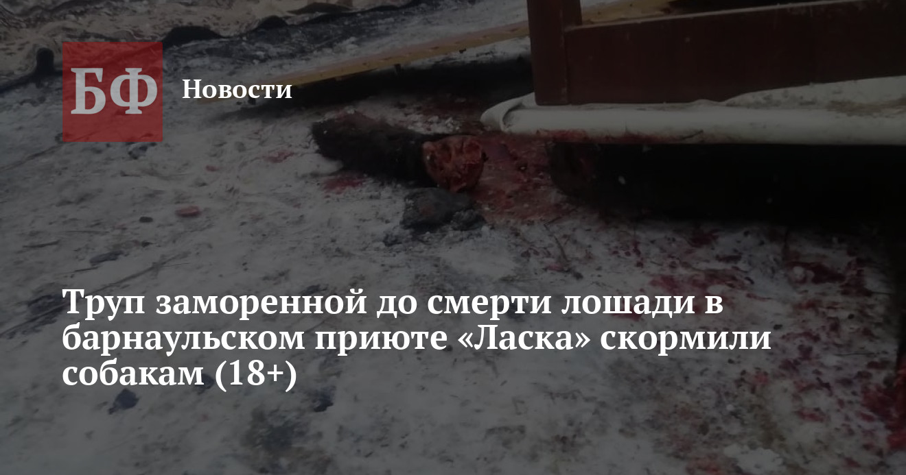 Сотрудница приюта «Ласка» в Барнауле Ирина Семенова намерена обратиться в полицию по факту жесткого обращения с лошадью, которая содержалась в учреждении и несколько дней назад погибла. Девушка рассказала ИА «Банкфакс», что за животным должным образом не ухаживали, вовремя не кормили и отвели ему холодное помещение с бетонным полом. Ответственной за ситуацию сотрудница приюта называет хозяйку лошади, близкую знакомую руководителя «Ласки» Любовь Дементьеву и хочет призвать ее к ответу. Также девушку возмущает тот факт, что труп погибшего животного скормили собакам, которых держат в учреждении. По мнению собеседницы, это кощунство. К тому же неизвестно, проводились ли исследования мяса на безопасность.