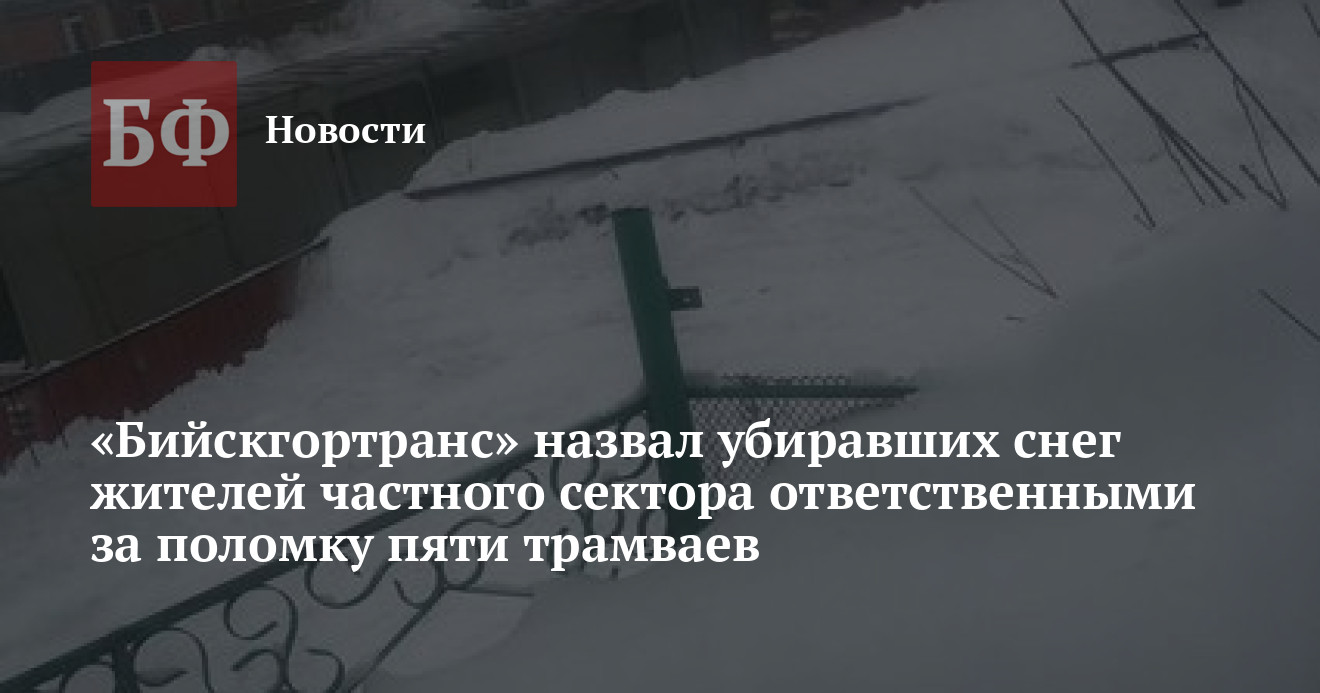Весь день 18 февраля в Бийске шел обильный снегопад — к вечеру выпало от 30 до 40 см осадков. Как сообщают в городских пабликах, дорожные службы активно расчищали автомобильные дороги, а жители частного сектора — подходы к своим домам. Однако «борьба за чистую территорию» привела к тому, что трамвайные пути оказались засыпаны снегом, и движение электротранспорта встало. В МУП «Бийскгортранс» заявили, что в случившемся виноваты жильцы частных домов, которые забросали снегом рельсы. На них же представители предприятия хотят возложить ответственность за поломку пяти трамваев. Причем обстоятельства, как именно горожане испортили транспорт, в МУП не уточнили.