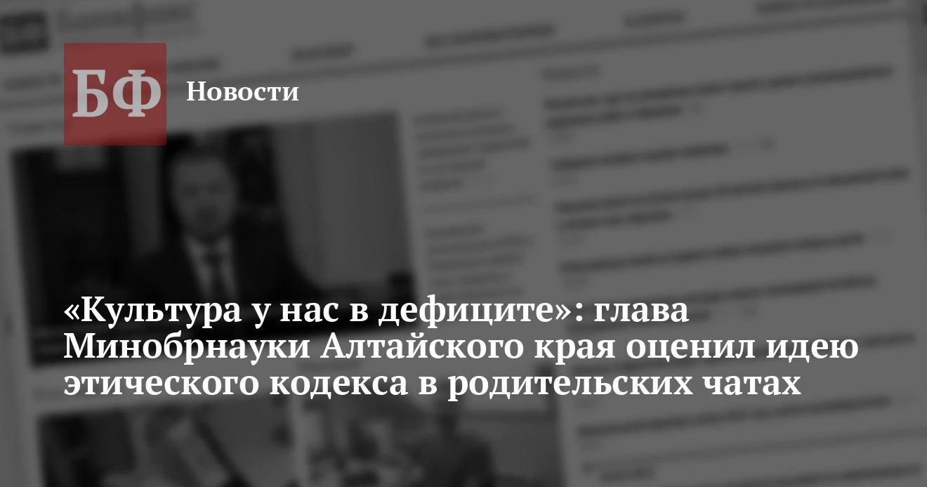 Учебные заведения Алтайского края прорабатывают возможность введения так называемого «этического кодекса» для общения в родительских чатах. Об этом в ходе пресс-конференции 25 февраля рассказал министр образования и науки региона Максим Костенко. По словам главы ведомства, каждая школа вправе сама регламентировать данные нормы, однако он считает, что никакой закон или предписание не будет работать, если граждане не станут соблюдать культуру поведения, которой, по его мнению, нашему обществу пока очень не хватает. Согласно позиции Костенко кодекс должен служить педагогам защитой от несправедливого буллинга.