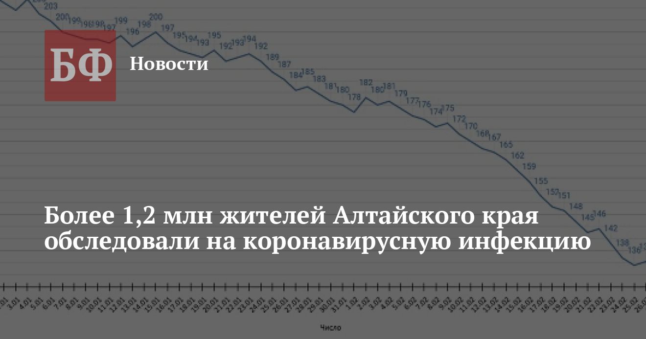 В Алтайском крае за трое минувших суток — с 26 по 28 февраля — зарегистрировано 404 новых случая заболевания коронавирусной инфекцией. При этом выздоровело 310 пациентов, а умерло 35 человек, от COVID-19 — 29. Общее число заболевших ковидом составляет 43 666 человек, в том числе 2981 ребенок. Вместе с тем обследовали на наличие инфекции более 1,2 млн человек.