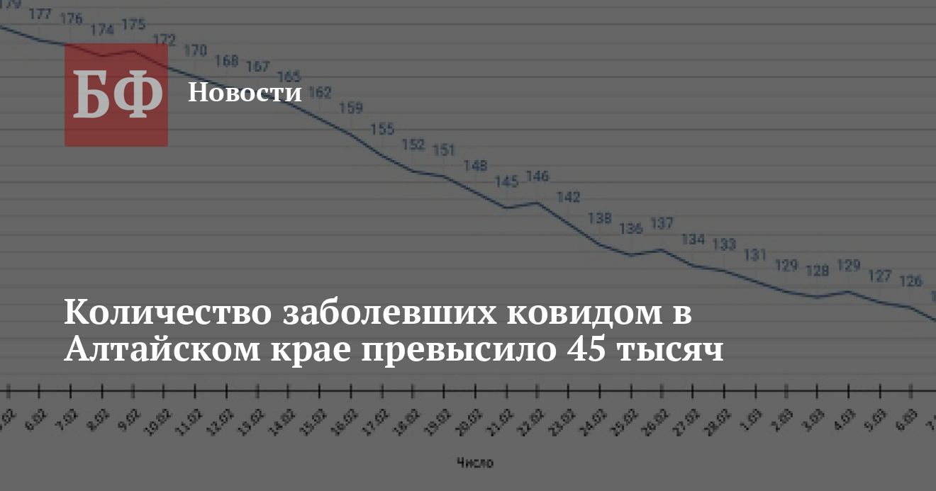 В Алтайском крае за прошедшие сутки зарегистрировано 119 новых случаев заболевания коронавирусной инфекцией. При этом выздоровело 65 пациентов, а умерло 12 человек, от COVID-19 — 11. Таким образом, общее число заболевших коронавирусной инфекцией составляет уже 45 045 человек, в том числе 3078 детей.