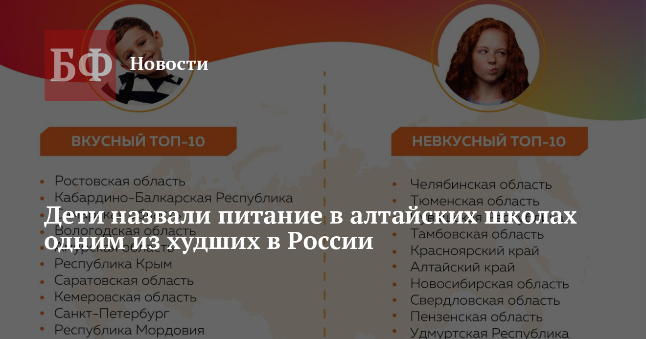 Алтайский край оказался в числе российских регионов с наименее удовлетворительной для детей организацией школьного питания. Такие результаты приводятся в рамках проекта Общероссийской общественно-государственной детско-юношеской организации «Российское движение школьников» «Шеф в школе». В то же время премьер-министр России Михаил Мишустин, в начале марта побывавший в Барнауле, обратил внимание на то, что в краевом центре сами родители отслеживают качество питания, и предлагает распространить эту практику на все субъекты РФ.
