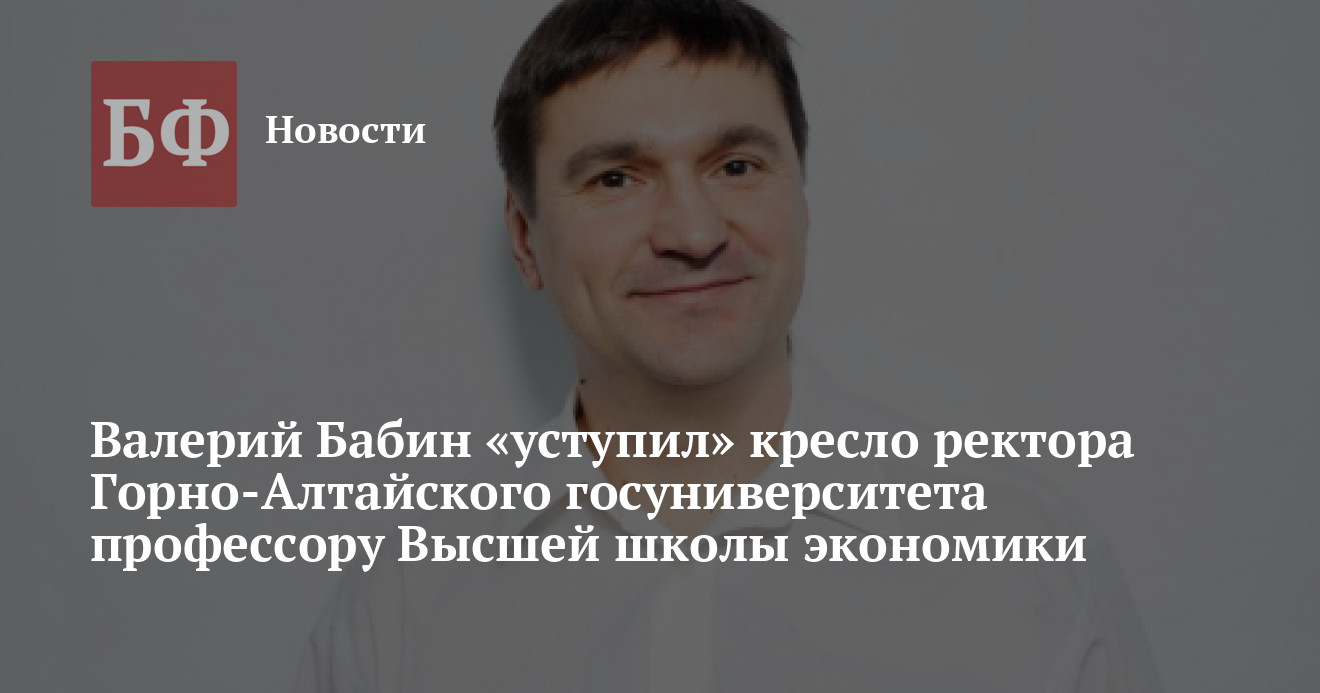 23 марта сало известно о том, что Валерий Бабин сложил полномочия ректора Горно-Алтайского государственного университета. Об этом сообщили «Новости Горного Алтая». По сведениям издания, и.о. ректора стал 50-летний Виталий Недельский, который имеет серьезный опыт работы чиновником и известен как основатель и директор десятка российских компаний, профессор Высшей школы экономики (ВШЭ). Между тем в медиацентре вуза «Банкфаксу» заявили, что официально приказ об отставке Бабина Минобром еще не подписан.