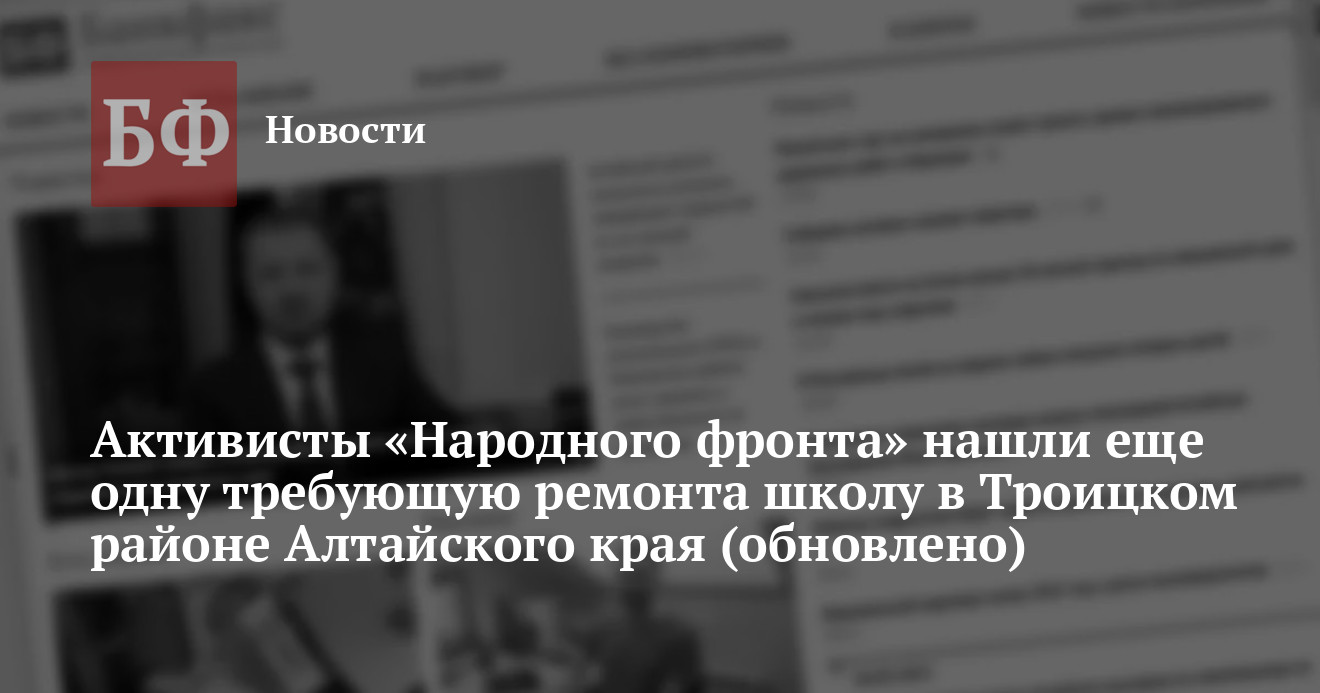 Представители регионального отделения «Общероссийского народного фронта» в Алтайском каре отреагировали на публикацию ИА «Банкфакс» о разрушающейся школе в поселке Беловском Троицкого района, которая требует срочных мер. Активисты сообщили, что им известно еще об одном образовательном учреждении в муниципалитете, здание которого не видело ремонта более 30 лет, от чего страдают и школьники, и педагоги. Однако представители районной системы образования заверили корреспондента ИА «Банкфакс», что указанное «фронтовиками» учреждение уже в этом году может быть отремонтировано в рамках КАИП. Осталось дождаться лишь одобрения краевых властей.