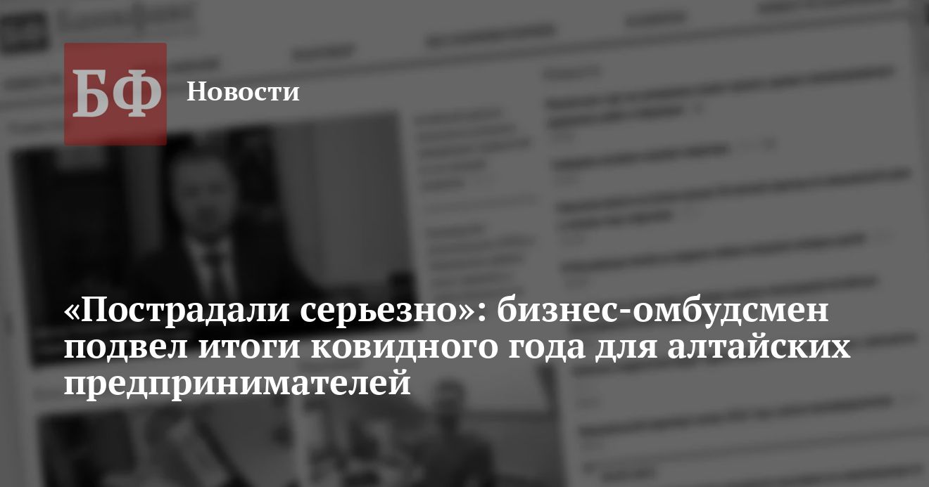 Уполномоченный по правам предпринимателей в Алтайском крае Андрей Осипов рассказал об итогах сложного для бизнеса 2020 года. По его словам, сфера предпринимательства серьезно пострадала от ограничительных мероприятий, связанных с пандемией коронавируса. Кроме того, удар по бизнесменам нанесла и отмена единого налога на вмененный доход (ЕНВД), из-за которой их налоговая нагрузка ощутимо увеличилась.