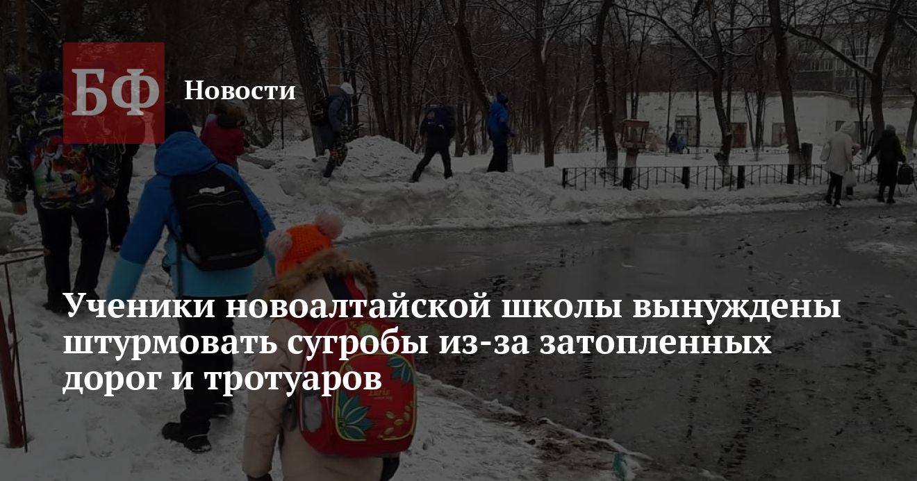 Родители учеников школы № 19 в Новоалтайске пожаловались в Сети на фактическое отсутствие безопасного пути к образовательной организации: огромные лужи, скрывшие под собой дороги и тротуары, школьникам приходится обходить по сугробам. Директор учреждения Олег Долматов при этом заверил «Банкфакс», что вверенная ему территория была полностью очищена от снега с утра, и он не несет ответственности за то, что находится за ее пределами.