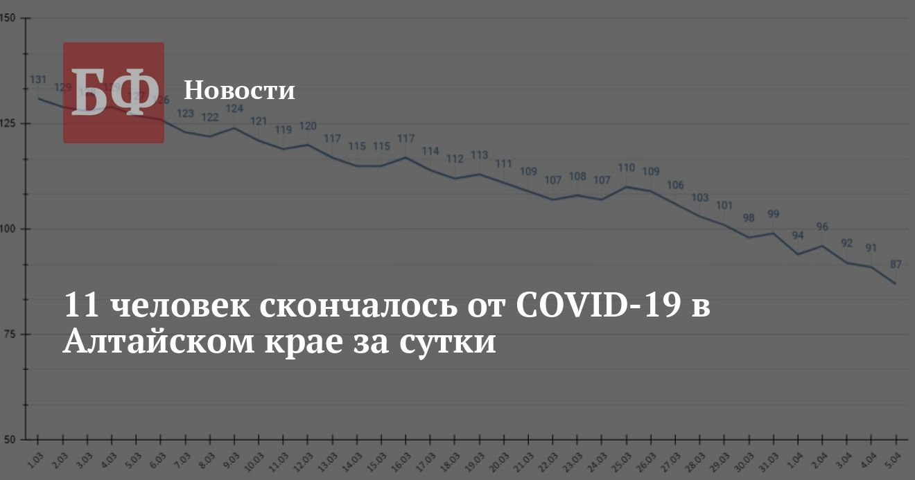 За минувший день в Алтайском крае выявили 87 случаев коронавируса. По данным оперштаба, скончалось еще 11 зараженных. Таким образом, график смертей вновь прыгнул вверх.