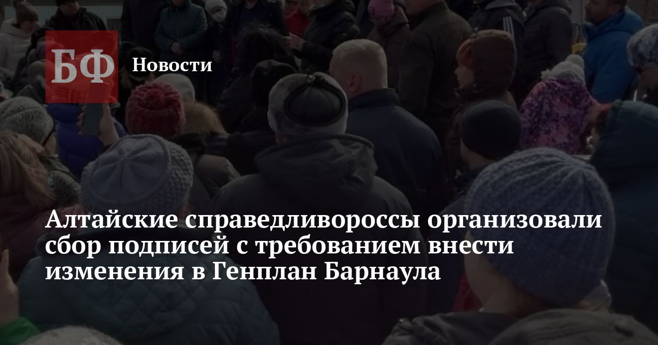 Жители микрорайона Западный в Барнауле поддержали обращение с требованиями внести изменения в Генплан и правила землепользования города в отношении индивидуальной застройки. Сбор подписей был организован депутатом Алтайского Заксобрания Евгенией Боровиковой и партией «Справедливая Россия — За правду» и за четыре дня нашел отклик у сотен барнаульцев, которые надеются, что им выделят зону под индивидуальное строительство. Как сообщили в алтайском реготделении справедливороссов, акция продлится до 20 апреля, после чего обращение будет направлено в администрацию города.