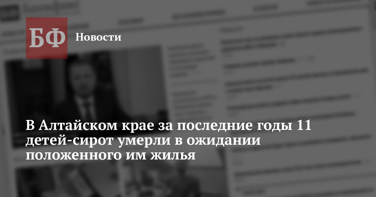 По данным Минстроя ЖКХ Алтайского края, за четыре года 11 детей-сирот выбыли из списков на получение жилья по причине смерти, так и не дождавшись квартир. Об этом ведомство сообщило в ответе на запрос ИА «Банкфакс». Кроме того, еще 48 человек выбыли из списков, покинув регион.