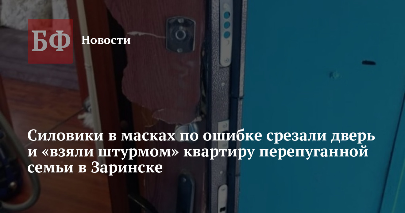 В результате ОМОНовцы срезали болгаркой дверь, а несколько силовиков в масках ворвались в квартиру. Позже выяснилось, что женщина, в отношении которой был выдан ордер на обыск, уже семь лет не проживает по данному адресу. Силовики, не долго думая, ретировались, оставив испуганную семью в слезах и без двери. Прибывшие позже заринские полицейские взяли у пострадавших объяснение, составили протокол осмотра и пообещали, что компенсируют установку новой двери. В какие сроки это будет сделано, женщине не указали.