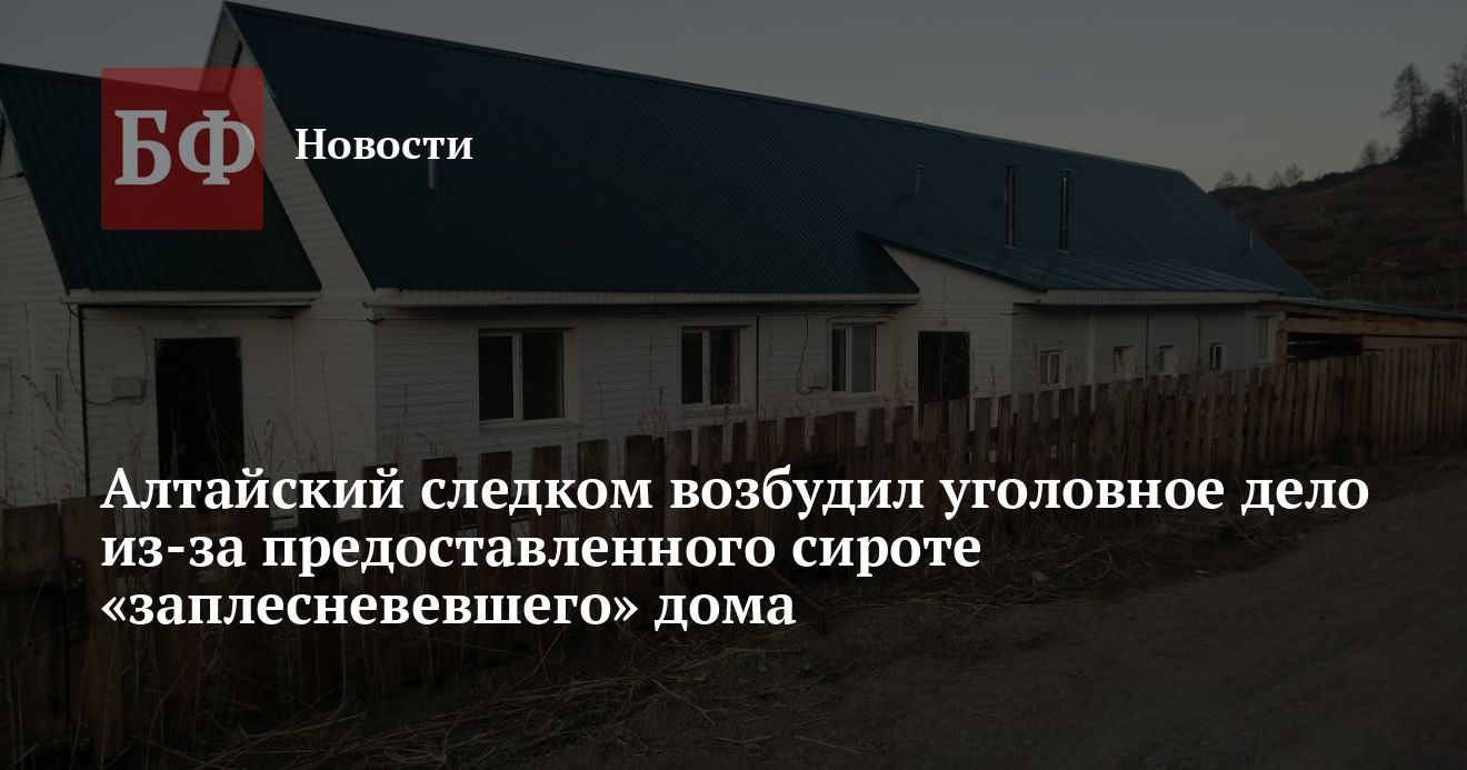 Органы СУ СКР по Республике Алтай возбудили уголовное дело из-за некачественного жилья, выделенного сироте в Онгудайском районе. Как полагают правоохранители, в муниципальном управлении социальной поддержки населения халатно отнеслись к своим обязанностям и не отреагировали на жалобы девушки о том, что дом буквально зарастает плесенью из-за сырости.