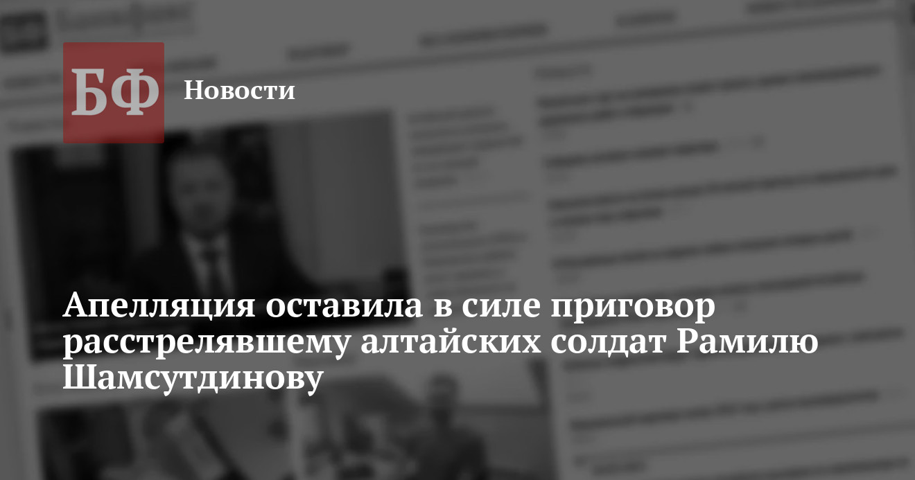 Апелляционный военный суд оставил без изменений решение Второго восточного окружного военного суда, согласно которому солдата-срочника Рамиля Шамстудинова почти на четверть века отправили в колонию строгого режима за расстрел своих сослуживцев, среди которых были и ребята из Алтайского края. О вердикте апелляционной инстанции адвокаты Шамсутдинова рассказали в соцсетях.