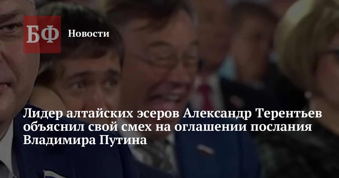 Депутат Госдумы, лидер алтайских справедливороссов Александр Терентьев объяснил свой смех во время оглашения послания президента России Владимира Путина Федеральному Собранию РФ 21 апреля. Он заверил Telegram-канал Baza, что якобы отреагировал на шутку своего коллеги, который отметил схожесть тем, беспокоящих Терентьева и президента.