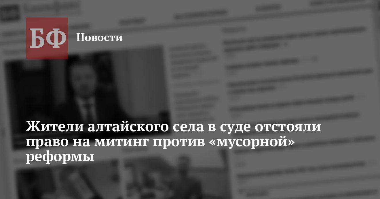 Ключевской районный суд удовлетворил иск руководителя инициативной группы жителей села Северка Светланы Теймуровой, которая обжаловала отказы администрации сельсовета в согласовании митинга против «мусорной» реформы, недавно дошедшей до муниципалитета. Как рассказала «Банкфаксу» секретарь Ключевского райкома КПРФ Татьяна Наймушина, которая помогала в организации акции, теперь властям придется пересмотреть предыдущее уведомление о мероприятии. Это очередной прецедент в Алтайском крае с незаконным отказом чиновников.