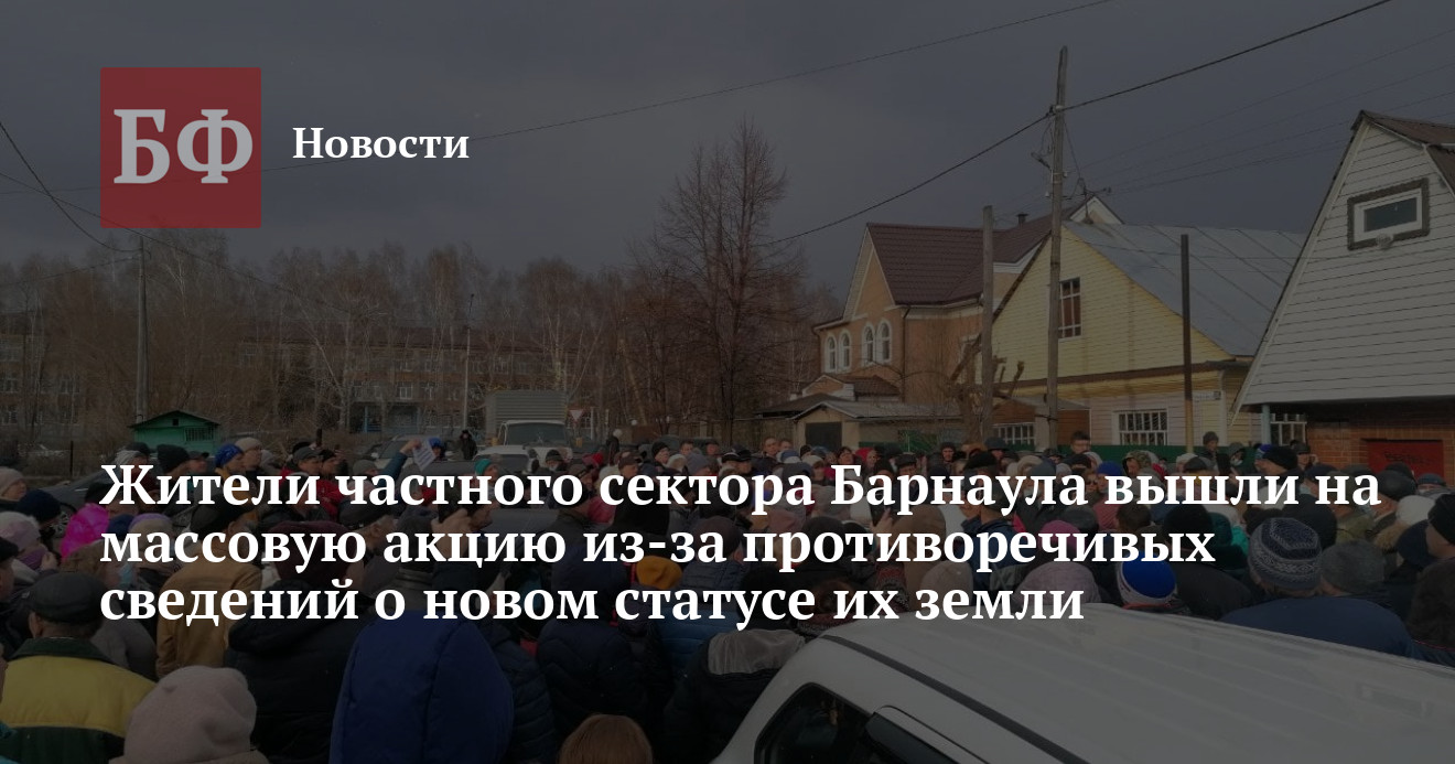 Как пишет Telegram-канал «Алтайские крайности», жители микрорайона вышли протестовать вечером 21 апреля. Они требовали ответа от чиновников, как им быть в сложившейся ситуации, когда земля под их домами вошла в зону Ж-1, разрешающую высотное строительство. Некоторые люди после визита к ним представителей справедливороссов считают, что теперь им не удастся построить на принадлежащих им участках новые частные дома или же капитально отремонтировать старые, и что в итоге частный сектор просто снесут ради строительства многоэтажек, выкупив у них землю за бесценок.