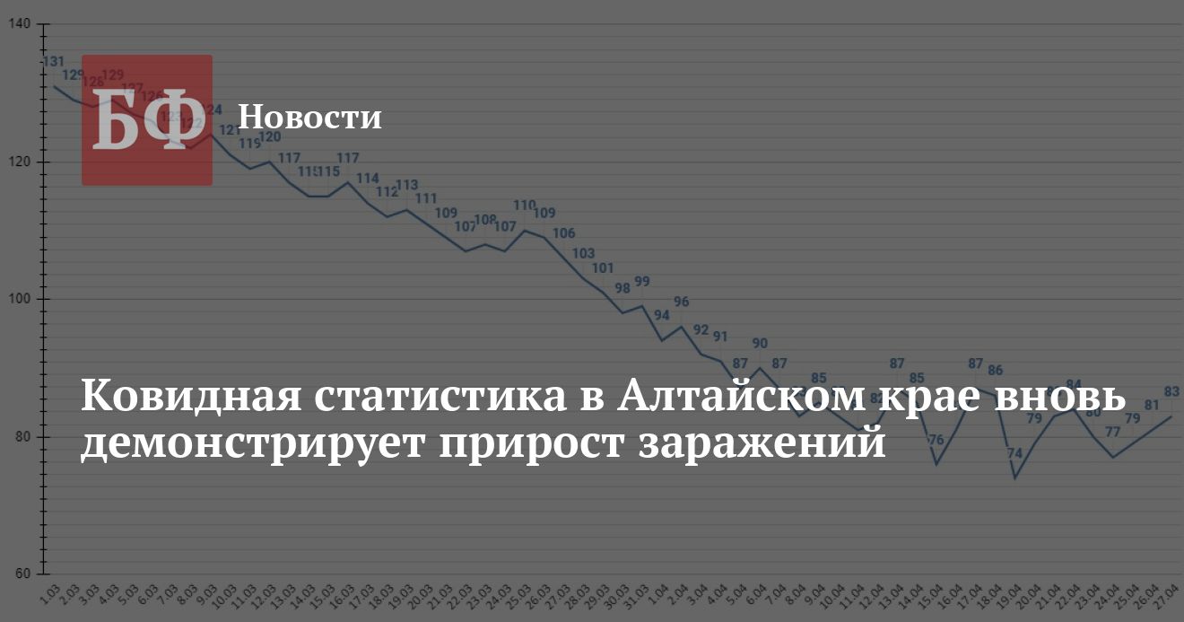 Из 83 случаев 24 было зарегистрировано в Барнауле, 10 — среди жителей Бийска, восемь — в Рубцовске, по три — в Камне-на-Оби, Бийском, Крутихинском, Поспелихинском и Рубцовском районах, по два — в Новоалтайске, Зональном, Кулундинском, Третьяковском и Чарышском районах, по одному — в Славгороде, ЗАТО Сибирском, Благовещенском, Бурлинском, Волчихинском, Ключевском, Косихинском, Курьинском, Михайловском, Новичихинском, Ребрихинском, Родинском, Романовском, Тюменцевском, Шелаболихинском и Шипуновском районах. С учетом этих цифр общее число заразившихся в Алтайском крае достигло 49 509 человек. Умер 2951 человек, из них восемь — за последние сутки. Непосредственно от коронавируса скончалось 2052 человека, а по иным причинам — 899 человек. Выздоровели всего 44 370 человек.