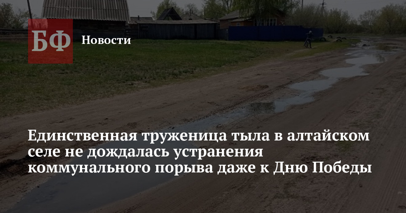 Жители села Андроново в Тюменцевском районе Алтайского края рассказали ИА «Банкфакс» об очередном коммунальном коллапсе. По словам граждан, в селе зафиксировано шесть порывов центрального водоснабжения. Причем некоторые из них не устраняют уже несколько месяцев. Так, у единственной оставшейся в живых в Андроново труженицы тыла Татьяны Веселковой трубу прорвало еще в феврале 2021 года, однако ни чиновники, ни коммунальщики пока не решили данную проблему. По словам уроженки села Ирины Катеневой, поздравить ветерана с Днем Победы представители власти не забыли, однако закрыли глаза на фонтан, который несколько месяцев заливает двор 96-летней женщины. При этом в доме вода бежит тоненькой струйкой.