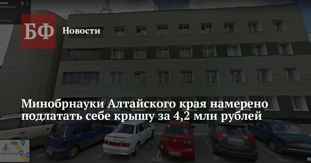Министерство образования Алтайского края ищет подрядчика для капитального ремонта кровли своего здания. Как следует из данных портала Госзакупок, это может обойтись краевому бюджету в 4,2 млн рублей.