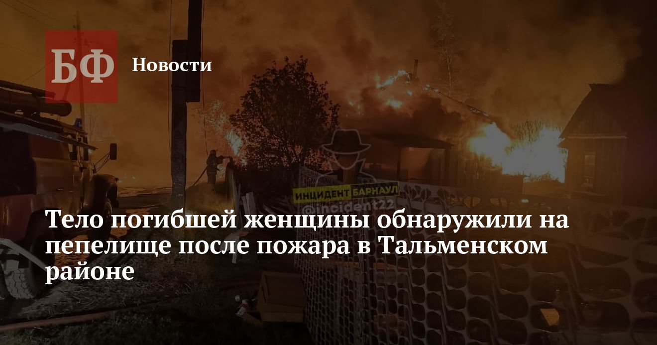 Серьезный пожар произошел в ночь на 15 мая на станции Озерки в Тальменском районе. Как сообщает ГУ МЧС по Алтайскому краю, на месте возгорания обнаружено тело погибшей женщины.