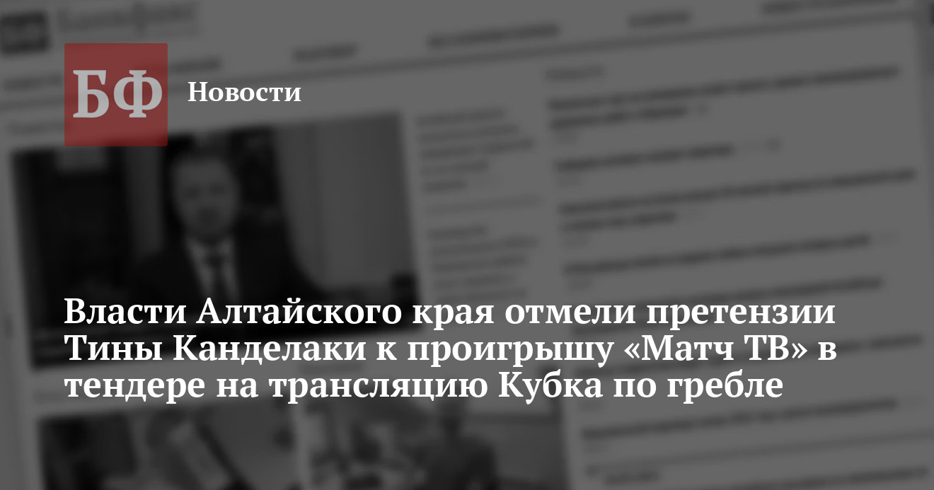Правительство Алтайского края прокомментировало скандал по поводу информационного сопровождения II этапа Кубка мира по гребле на байдарках и каноэ в Барнауле, который разожгла генеральный продюсер спортивного телеканала «Матч ТВ» Тина Канделаки. Она опубликовала в Сети открытое письмо к губернатору Алтайского края Виктору Томенко, где в жестких выражениях раскритиковала министра спорта региона Алексея Перфильева и фактически попеняла краевым властям, что те не «подстроили» критерии закупки по освещению соревнований под «Матч ТВ», в результате чего победителем была признана компания из Тюмени. В пресс-службе правительства края «Банкфаксу» в свою очередь заявили, что аукцион был проведен в соответствии с законом, что подтверждено УФАС, а «Матч ТВ» уступил победу по объективным причинам.
