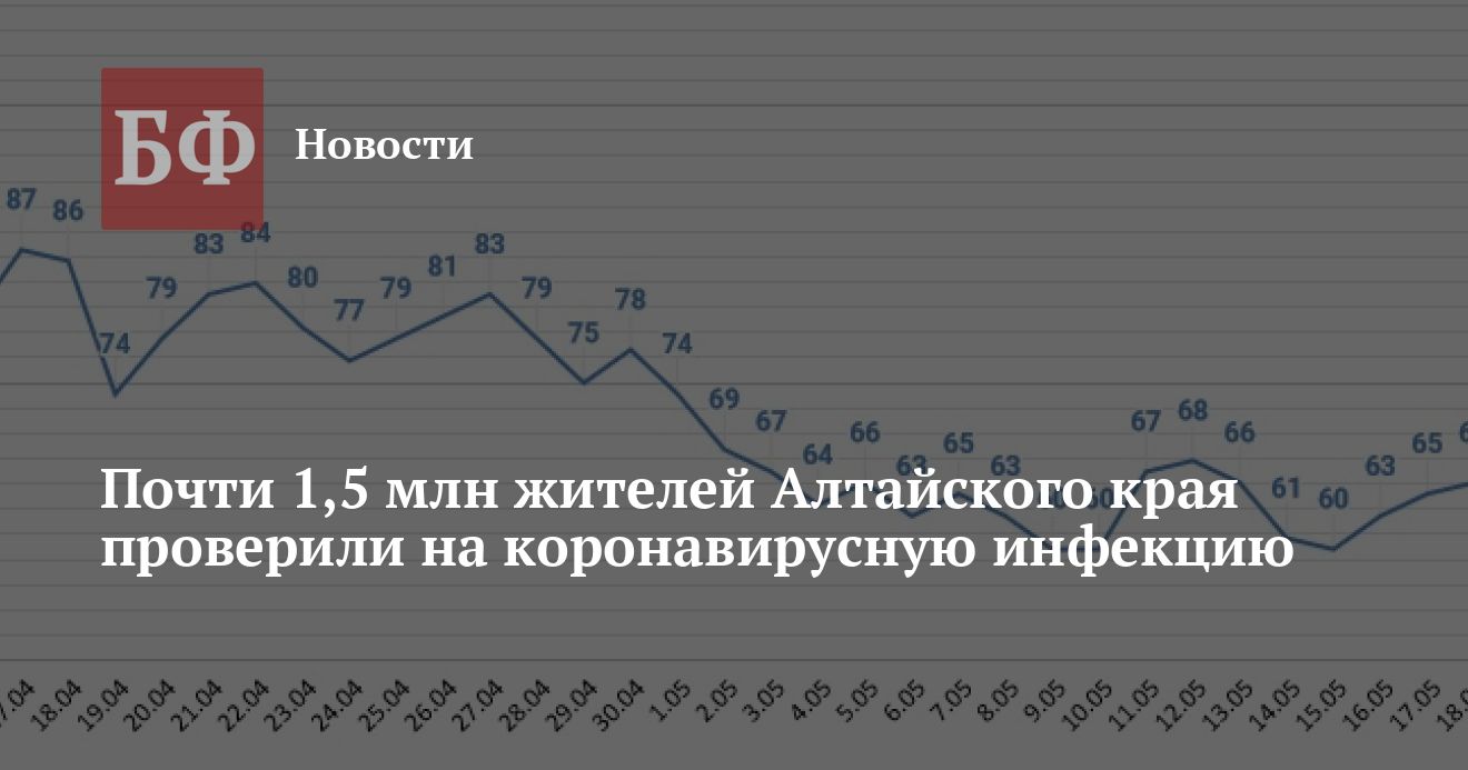 По данным оперштаба региона, за минувшие сутки в крае зарегистрировано 64 новых случая заболевания (в том числе бессимптомные случаи) коронавирусной инфекцией: Барнаул — 22, Бийск — семь, Родинский район — пять, Павловский район — четыре, Камень-на-Оби, Новоалтайск, Калманский, Ребрихинский районы — по три заболевших, Поспелихинский район — два, Рубцовск, ЗАТО Сибирский, Славгород, Бийский, Благовещенский, Егорьевский, Зональный, Первомайский, Рубцовский, Табунский, Троицкий, Целинный район — по одному заболевшему.