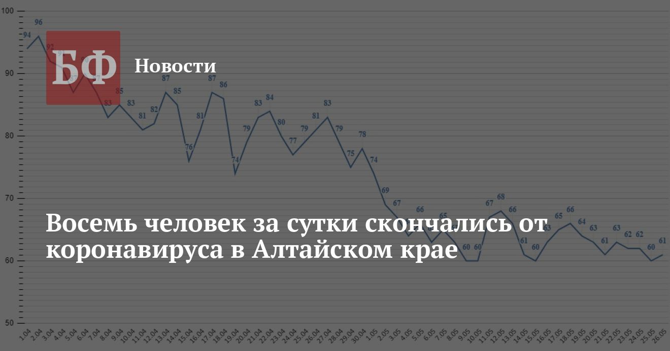 С учетом этих цифр общее число заразившихся в Алтайском крае достигло отметки в 51 404 человек. Выздоровело всего 46 364 человек, в том числе 66 — за последние сутки. Погибло 3196 человек, из них 2266 — непосредственно от COVID-19 (в том числе восемь — за последние сутки), а 930 — по иным причинам.