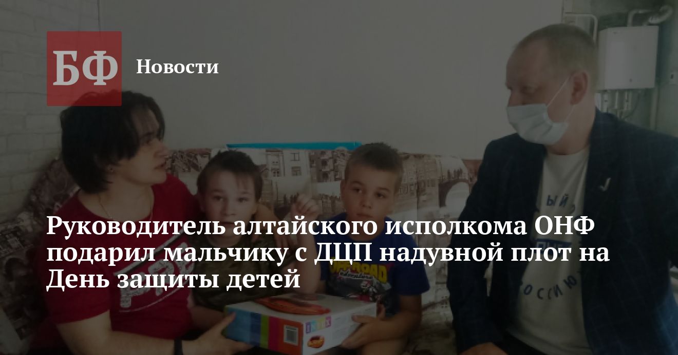 Начальник исполкома ОНФ в Алтайском крае Сергей Войтюк исполнил мечту 11-летнего Миши Прохорова из Барнаула, подарив ему надувной плот в канун Дня защиты детей. Как сообщается на сайте общественной организации, семья мальчика с ДЦП обрадовалась такому подарку.