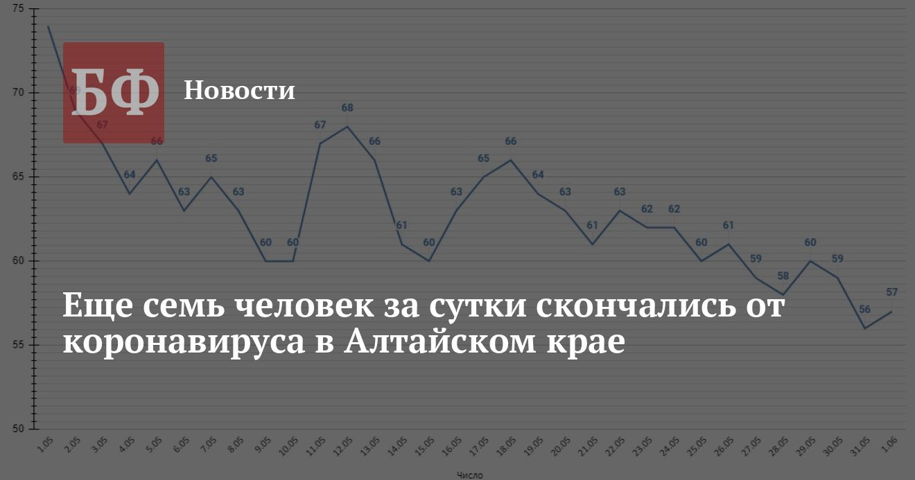 Из 57 новых случаев заражения 27 выявили в Барнауле, девять — в Камне-на-Оби, пять — в Павловском районе, четыре — в Новоалтайске, по три — в Заринске и Романовском районе, по два — в Алейском и Бийском районах, по одному — в Бийске и Зональном районе. В общей сложности в Алтайском крае за все время было выявлено 51 753 инфицированных. Выздоровело 46 662 человека. Погибло 3248 зараженных, из них 2314 (в том числе семеро — за последние сутки) — непосредственно от коронавируса, а еще 934 по иным причинам.