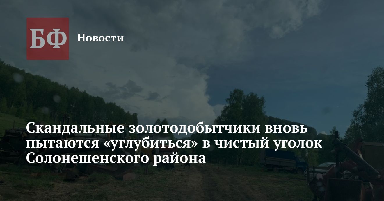 Как рассказал «Банкфаксу» председатель местного общества охотников и рыболовов Александр Тюнин, неделю назад на реке Солонешной стала появляться специальная техника и бытовки для проживания рабочих. Их завозят на участок, расположенный в 7 км от райцентра Солонешное в сторону села Медведевка. Тюнин полагает, что на этом месте вскоре начнут добычу золота. При этом, по его информации, ее инициируют те же лица, что ранее занимались золотодобычей на реке Ануй, выше села Топольное Солонешенского района. Тогда разработка месторождения россыпного золота закончилась судом для ООО «Ануй» — деятельность фирмы признали незаконной из-за потенциального ущерба для краснокнижной флоры и фауны и долины реки в целом.