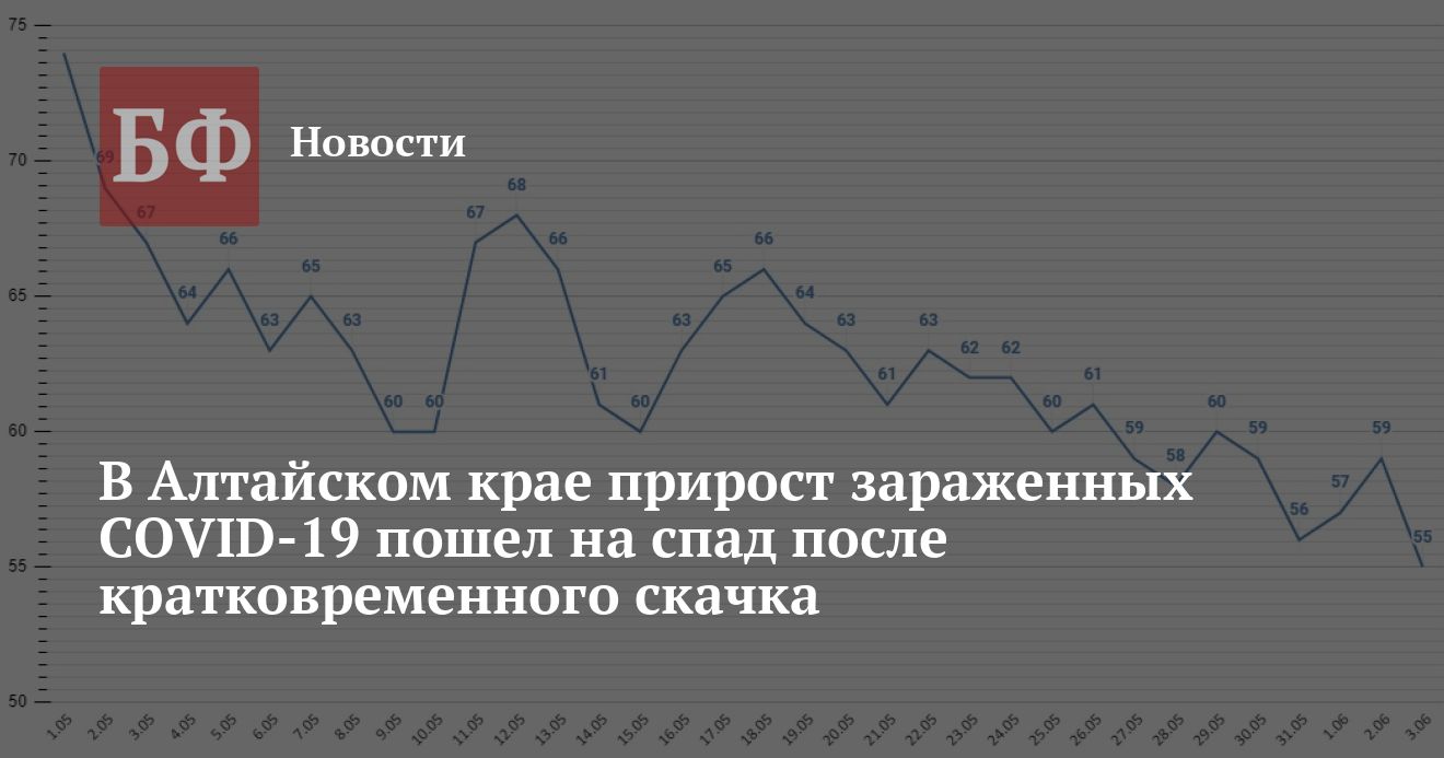 Из 55 новых случаев 19 было зарегистрировано в Барнауле, шесть — в Бийске, по пять — в Рубцовске и Камне-на-Оби, по три — в Новоалтайске и Тальменском районе, по два — в Славгороде, Благовещенском, Волчихинском и Завьяловском районах, по одному — в ЗАТО Сибирском, Бурлинском, Ключевском, Панкрушихинском, Романовском и Шипуновском районах. В общей сложности за время пандемии в Алтайском крае заразились 51 867 человек. Выздоровело всего 46 748. Умерло 3 264 человека, все взрослые, из них 2329 (в том числе семеро за последние сутки) погибли непосредственно от COVID-19, а еще 935 — по иным причинам.