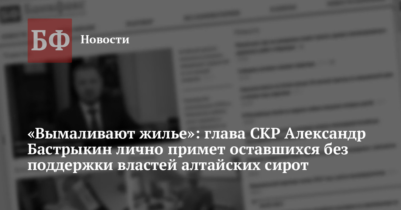 Руководитель Следственного комитета России Александр Бастрыкин поручил организовать личный прием граждан из числа детей-сирот, проживающих в Омской области и Алтайском крае. Как пояснили в СКР, именно из этих регионов поступает наибольшее количество жалоб — граждане заявляют, что сталкиваются с равнодушием и бездействием властей, а потому вынуждены вымаливать положенное им жилье. Бастрыкин остался крайне недоволен данной ситуацией и решил лично разобраться в этих вопросах.