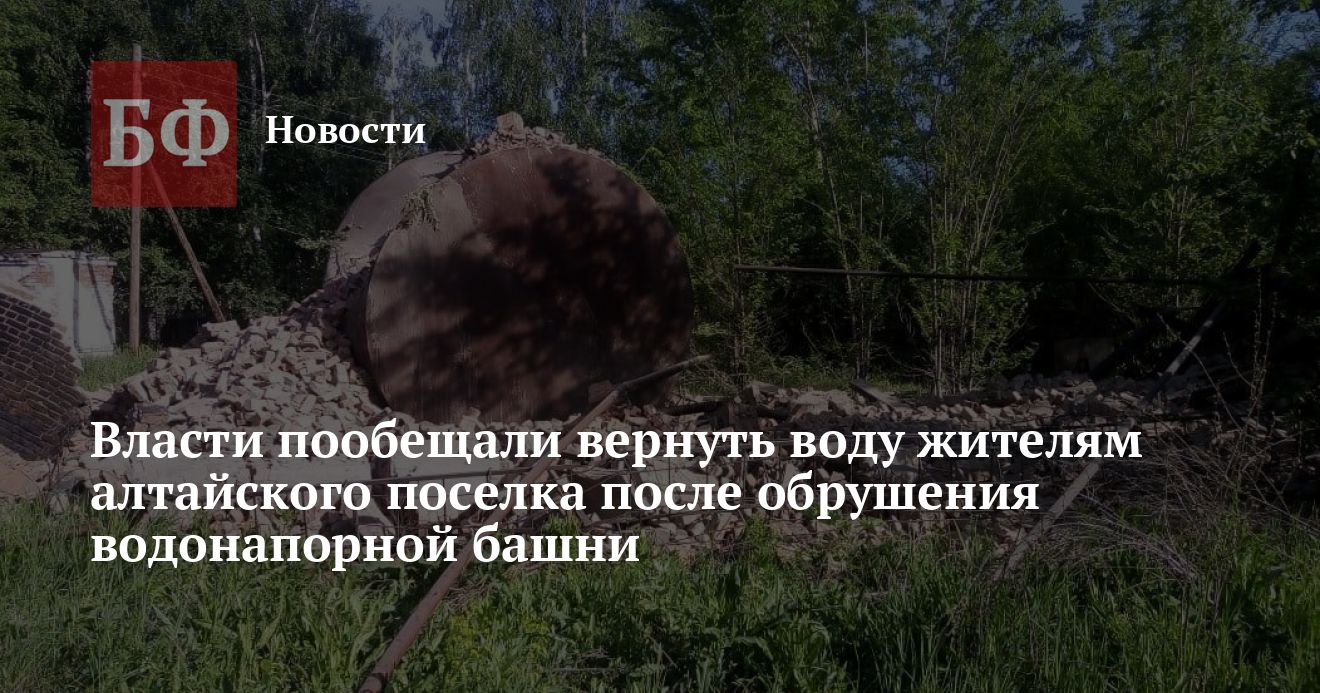 Накануне в поселке Заря Бийского района рухнула водонапорная башня, из-за чего местные жители остались без подключения к сети. «Обезвоживание» долго не продлится, утверждают власти: подачу воды должны возобновить уже во второй половине дня 7 июня. Глава Заринского сельсовета Михаил Кузнецов рассказал ИА «Банкфакс», что проблему оперативно решили после вмешательства края.