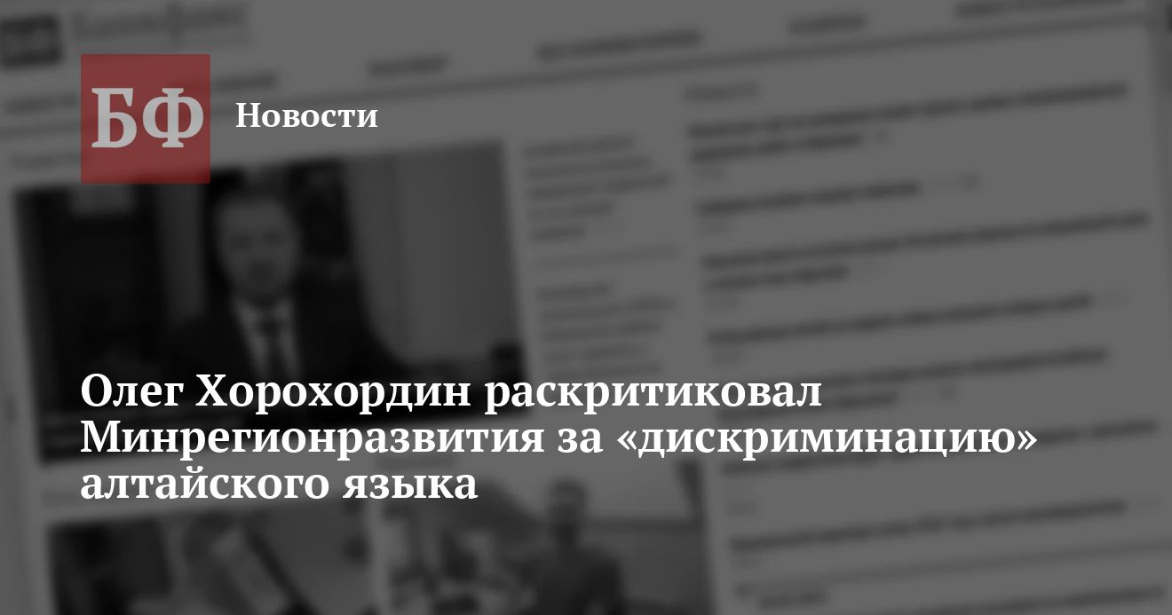 Отказ министерства регионального развития Республики Алтай на просьбу гражданина об использовании алтайского языка на автовокзале и в аэропорту Горно-Алтайска вызвал негодование не только среди пользователей соцсетей, но и у главы региона Олега Хорохордина. В Минрегионразвития посчитали, что это станет нагрузкой для ушей пассажиров и сотрудников, и сравнили алтайский язык с излишним шумовым фоном. Хорохордин посчитал такой ответ ведомства недопустимым и дал министру распоряжение пересмотреть данный подход, сообщает пресс-служба правительства республики.